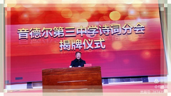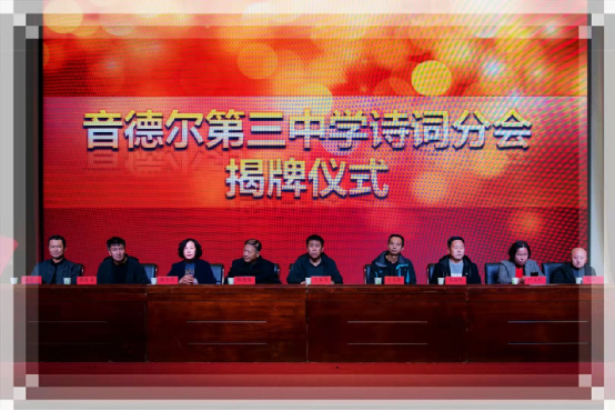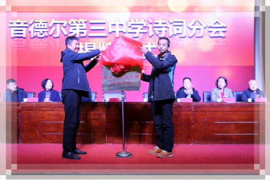 兴安盟诗词学会副会长,扎赉特旗诗词学会会长王玉庆同志和王东升校长为音德尔第三中学“诗词分会”揭牌。